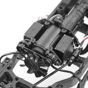 Power comes from a 370 motor. Two servos respectively control both the switch between high and low speed gears and the operation of the transfer case, thus switching between rear drive and four-wheel drive. Both the front and rear differentials also have a differential lock function, each driven by a servo which can be locked by remote control. Four metal Drive Shafts transmit power from the differential to the reduction gear assembly, commonly known as a "portal axle". The HUMMER H1 also has a full metal gear-set and 47 ball-bearings. We have included the rear wheel steering as an additional hidden function, so you now have a total of 4 steering modes! The extra mode, which can reduce the steering radius by 50%, is ideal in confined spaces.