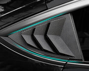 Introducing the Matte Carbon Rear Side Window Shades Blinds Covers, specifically crafted for Tesla Model 3 vehicles from 2017 to 2023. These stylish louver covers are an essential upgrade for Tesla enthusiasts eager to elevate their car's exterior appearance. Designed with precision, they fit seamlessly over the rear side windows, offering a bold and modern look. Built to endure the elements, these covers are resistant to moisture, fading, cracking, and warping, ensuring they maintain their sleek appearance over time. The matte carbon-like finish not only enhances the vehicle's aesthetic but also complements its overall design. Installation is straightforward and hassle-free, thanks to the pre-installed high-quality adhesive tape, which requires no modifications or additional tools. Sold as a pair, these louver covers combine style and practicality, making them a valuable addition to any Tesla Model 3. Item Number: C33497.