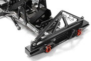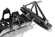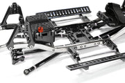 Elevate your 1/10-scale Axial SCX-10, Dingo, Honcho, or Jeep with our Steel Ladder Frame Chassis Kit w/ Hop-up Combo, a must-have for any serious RC enthusiast. This all-inclusive kit is designed to replace or enhance your existing chassis with sturdy steel frame rails and an array of meticulously crafted, color-coordinated billet-machined components. You'll find upgraded shock mounting hoops that offer multiple positions for customization, along with robust chassis braces and bumper mounts. The kit also includes a billet-machined alloy center skid, a battery tray with a composite plate and quick-release straps, and an alloy receiver box. For superior suspension, it features an HD alloy anodized lower 4-link system with a mount adaptable for either the front or rear axle. The transformation is completed with a striking front bumper equipped with a push bar and D-rings, a rear bumper with a swing-out spare tire mount, and custom side steps. Available in a range of colors including black, green, gunmetal, red, or silver, this kit not only enhances the durability of your trail rig but also adds a sleek, personalized touch. Please note that assembly is required, and the suspension link lengths are 110mm for the upper and 120mm for the lower links. Discover the perfect blend of performance and style with Item# C26936BLACK.