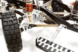 Our full-upgrade spec Trail Roller 6X6AWS chassis just got better with the availability of twin motor power! The new Twin Motor* Trail Roller 6X6 AWS features a new heatsink motor plate that allows you to run a pair of brushed or brushless motors for ultimate crawling and climbing power. Just like our original Trail Roller 4X4, this 1/10-scale 3-axle 6-wheel drive chassis features a full-time drivetrain with 3-gear transmission and metal gear internals, standard issue slipper clutch, alloy HD slider drive shafts, multi-link suspension, Billet-machined realistic alloy shocks, full alloy axles, all-axle steering, full ball bearings; alloy bead lock wheels and pre-mounted rock crawler tires, alloy scale front bumper, alloy scale side steps, and more. The chassis is pre-built and ready for the electronics of your choice. We have the Twin-Motor Trail Roller in black or silver color schemes. (*motors not included)